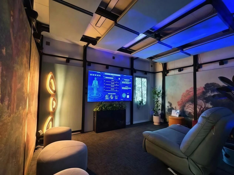 为进一步提升沉浸体验,实验室还利用WFS(Wave Field Synthesis)波场合成全息声电子声罩技术,通过人工智能调控声音的空间方位与频率,结合微压氧舱硬件设计,激活小脑与感觉-运动皮层,帮助用户进入深度冥想状态。