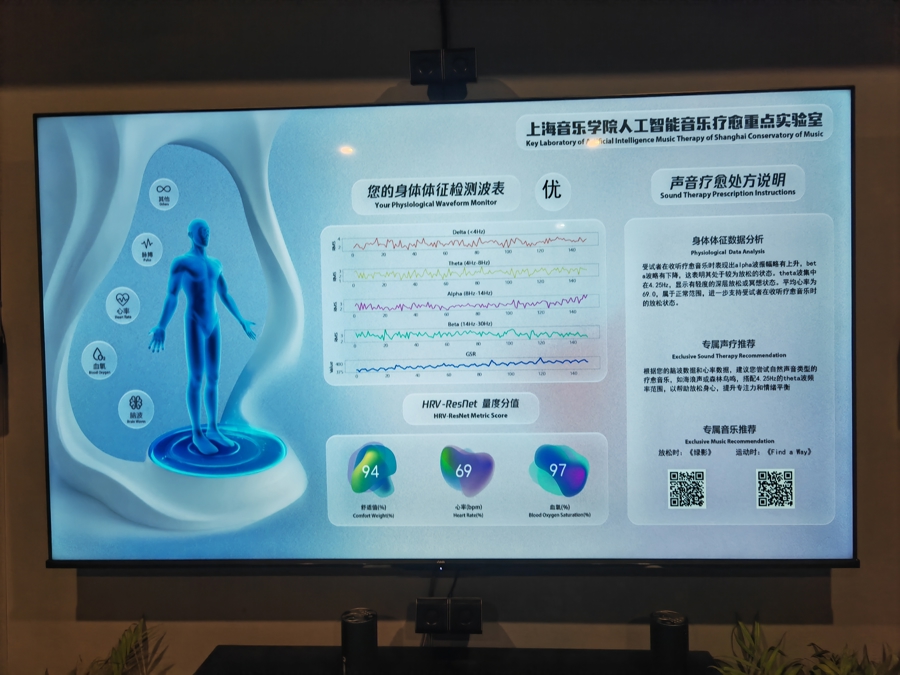 庞大的音乐数据库从何而来?上海音乐学院创建于1927年,是中国第一所独立建制的国立高等音乐学府,因此有非常丰富的语料库基础。而更为独特的是,上音有自己的民族音乐语料库,还有非遗音乐的语料库,每首音乐都标注了详细的“元数据”,形成了上音独有的疗愈音乐语料库。“同时,我们还原创了上千首针对特定场景的疗愈音乐,确保音乐内容的专业性和针对性。”刘灏教授说道。